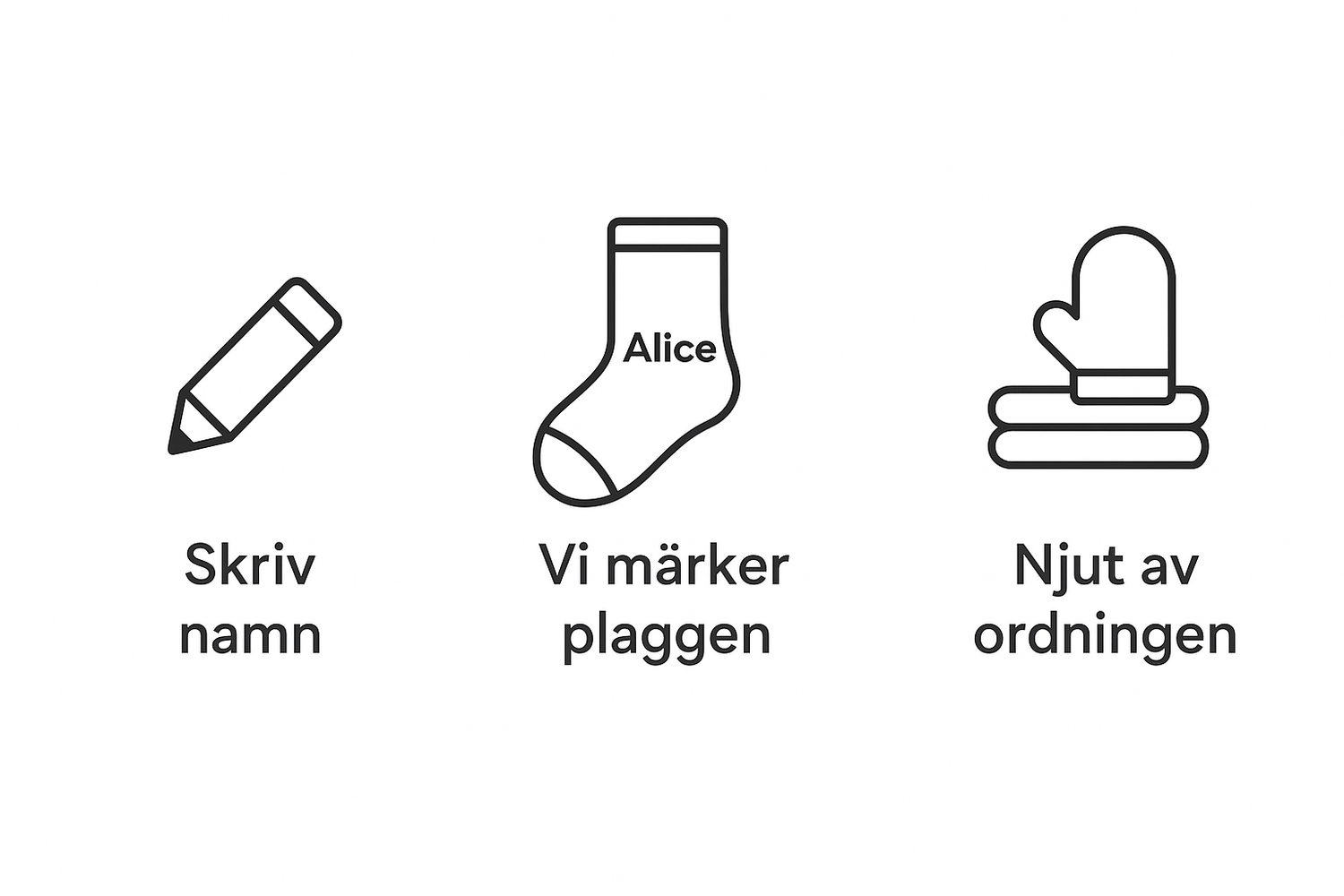 Våra diskret namnade plagg för både stora och små hjälper familjer att spara tid, undvika förväxlingar och få en lite lugnare vardag.