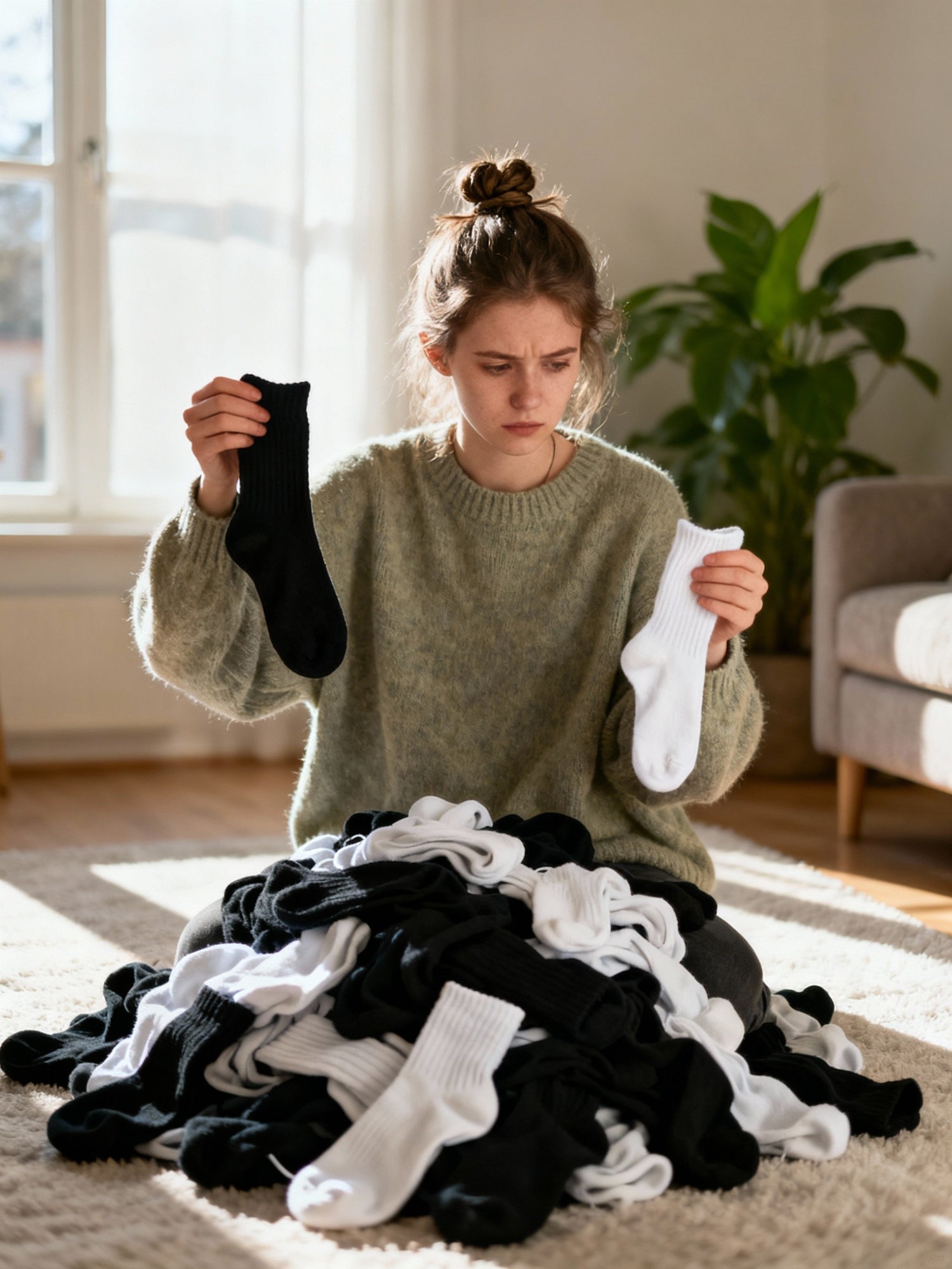 Den eviga kampen. Berget av omaka strumpor som ska sorteras och känns som en oändlighet.